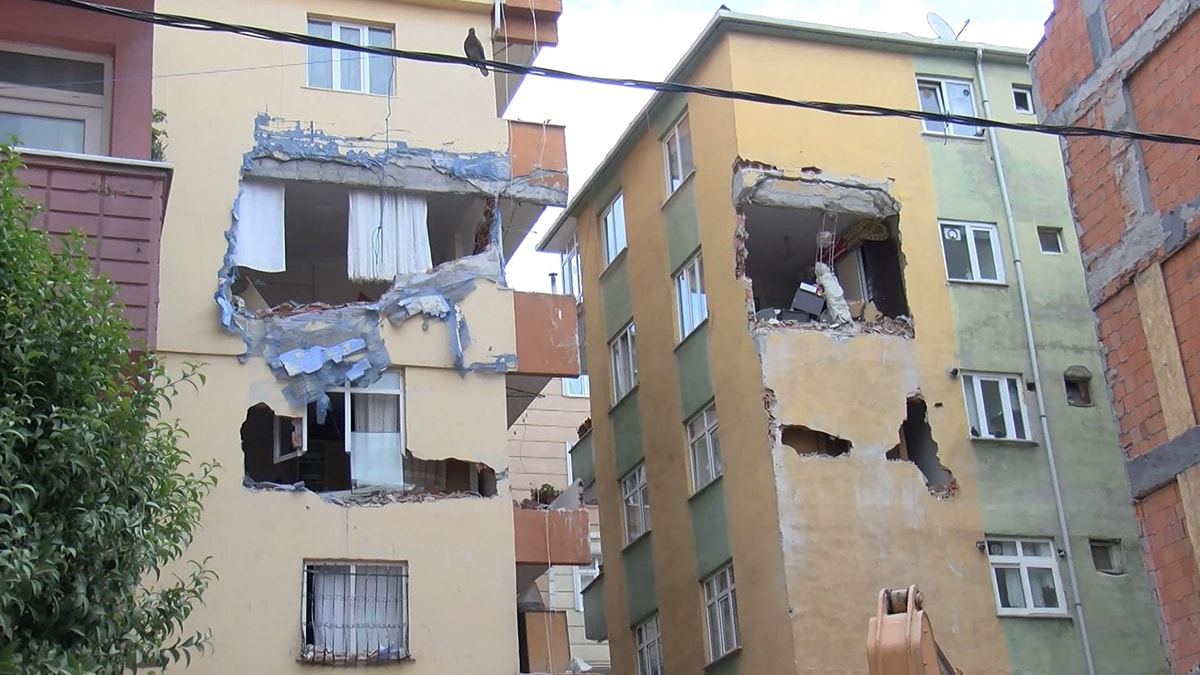 İstanbul Bahçelievler'de kısmen çöktükten sonra kontrollü yıkılan bina enkazından birkaç eşya ve motosiklet çıkartıldı. Yıkılan binanın arka tarafında bulunan ve hasar alan 2 apartmanın önünde ise bekleyiş devam ediyor.