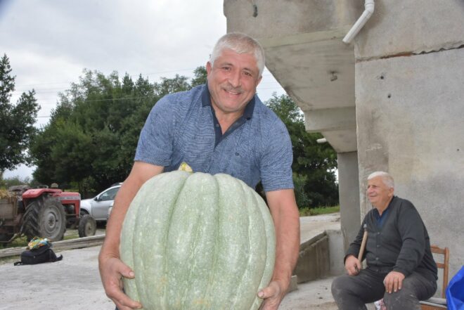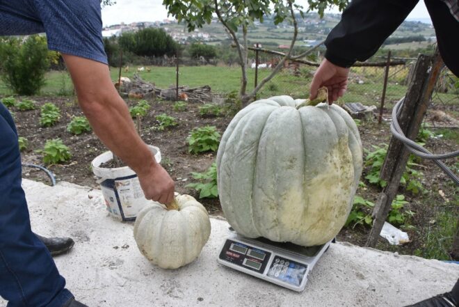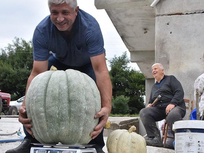Bekir Özcan, "Her sene ekiyoruz normalde. Ama bu sene ektik kabak gördüğünüz gibi böyle oldu. 40 kiloluk kantarla tarttık. Kantar tartmıyor. Kimyasal gübre vermedim hayvan gübresiyle bu şekilde oldu. Bunu kendim yiyemeyeceğim için bölüp mahalleliye dağıtacağım. Herhalde tüm mahalleye yeter. Satmayı düşünmüyorum. Tatlısını yapıp yiyeceğiz" dedi.