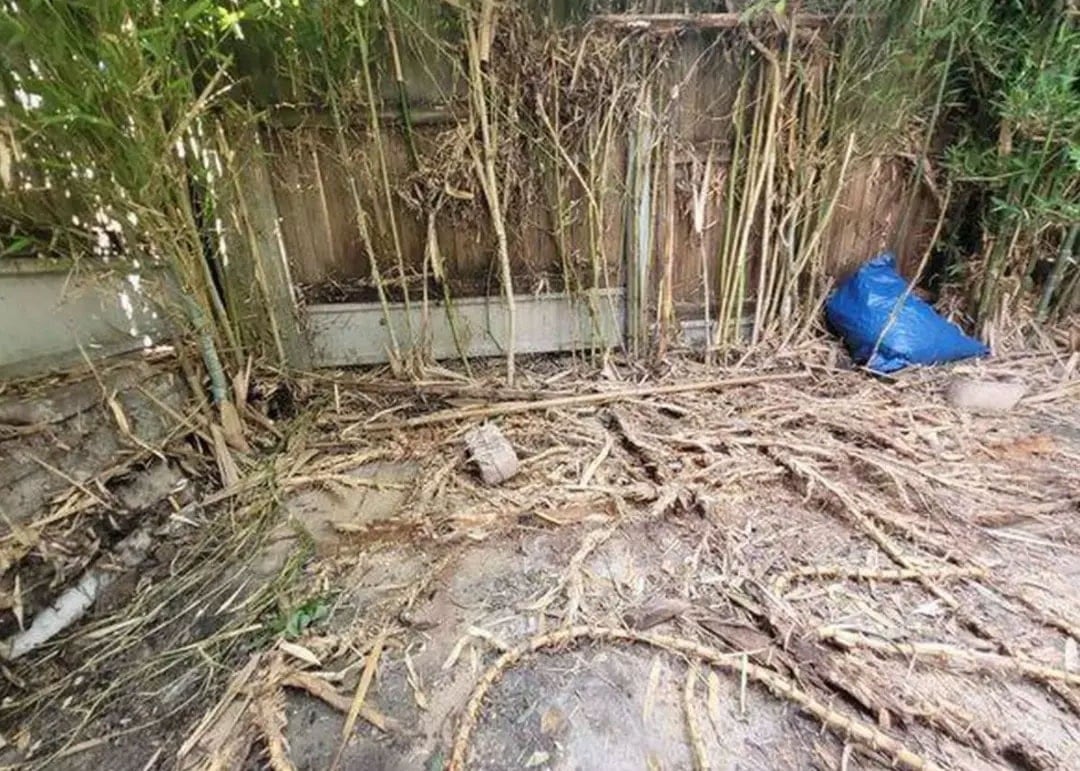 Çift, sorunun kaynağını görmek için kulübeyi kaldırdığında kalın bambu kökleri ortaya çıktı. Bitki yalnızca kendi bahçesinde değil, iki komşu arsasına doğru da ilerlemişti. Yayılma alanının genişliği, kontrolsüz bambunun ne kadar güçlü ve yıkıcı olabileceğini de gösterdi.