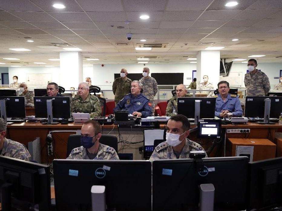 Pençe-Kilit Operasyonu kapsamında gerçekleştirilen hava hücum harekatını takip eden Akar, sahadaki son duruma ilişkin bilgi aldı, harekata katılan birliklerin komutanları ile video konferans yöntemi ile toplantı yaptı.