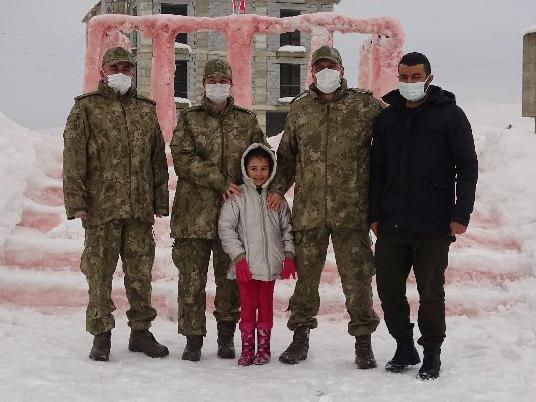 Hira, babasının kendisi için yaptığı 'kardan Anıtkabir' önünde 'Atatürk' şiirini okudu. Karahan ailesiyle bir süre sohbet eden komutanlar, beraberlerinde getirdikleri hediyeleri de verdikten sonra evden ayrıldı.(DHA)