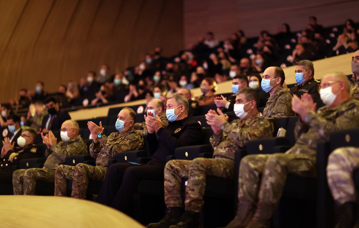 Başkent Bakü'de Azerbaycan Savunma Bakanı Zakir Hasanov ve diğer yetkililer tarafından karşılanan Akar ve komutanlar, havalimanından Haydar Aliyev Kültür Merkezi'ne geçerek '8 Kasım Zafer Günü' nedeniyle düzenlenen kutlama programına katıldı. Saygı duruşunda bulunulması ve iki ülke ulusal marşlarının okunmasıyla başlayan törende konuşan Akar, 'can gardaşlar' ifadesini kullanarak söze başladı.