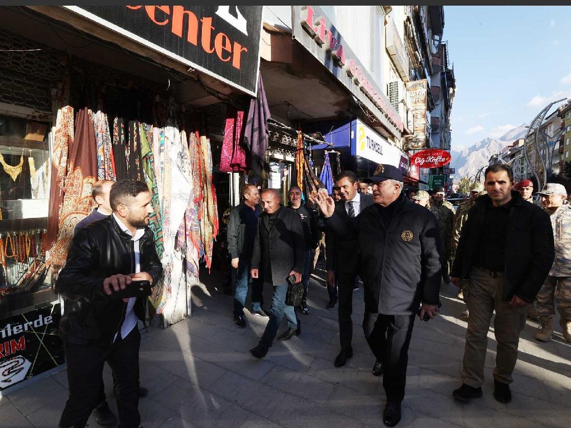 Hakkari’deki Dağ ve Komando Tugayında faaliyetlere ilişin brifing alan, talimatlar veren Bakan Akar daha sonra beraberindeki TSK Komuta Kademesi ile kent merkezindeki esnafı ziyaret etti.