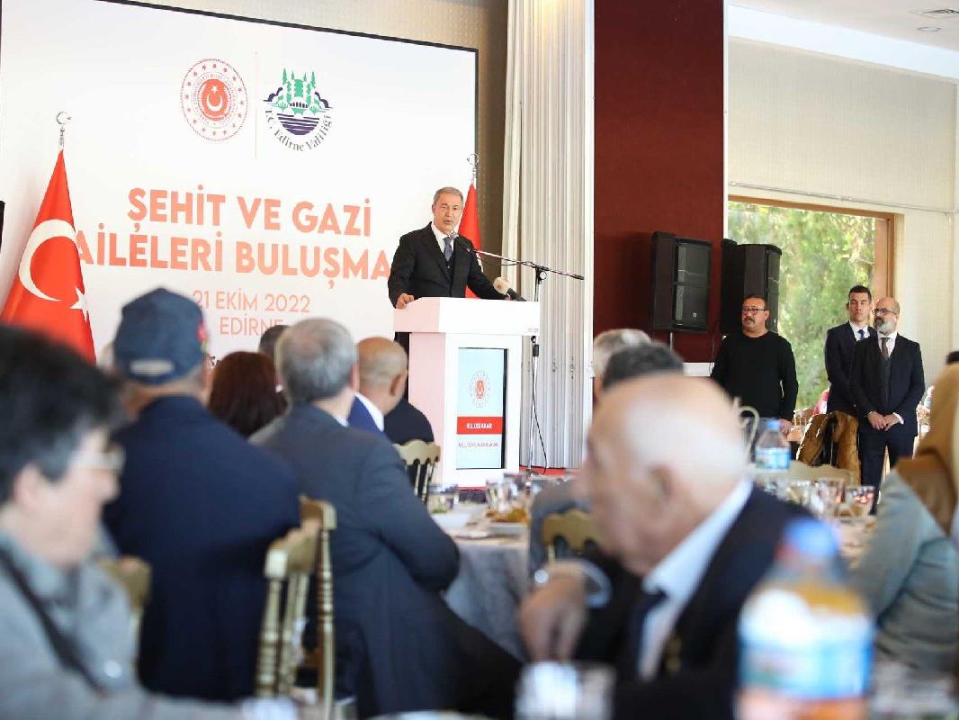 Şehit ve gazi aileleri ile bir araya gelmekten duyduğu memnuniyeti ifade eden Bakan Akar, dünyada ve bölgede ciddi sıkıntı ve krizlerin yaşandığı bir dönemde tüm gelişmeleri yakından takip ettiklerini ifade etti.