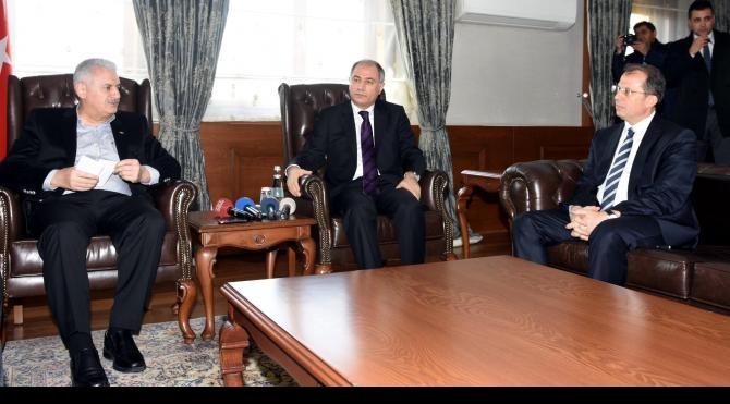 İçişleri Bakanı Efkan Ala ile Ulaştırma Denizcilik ve Haberleşme Bakanı Binali Yıldırım, özel uçakla Van`a geldi. Van Ferit Melen Havalimanı`nda Van Valisi İbrahim Taşyapan, Ak Parti Van Milletvekili Beşir Atalay, Ak Parti Van İl Başkanı Zahir Soğanda, kurum amirleri ve partililer tarafından karşılandı. Van Valisi İbrahim Taşyapan`ı makamında ziyaret eden bakanlar burada açıklama yaptı.