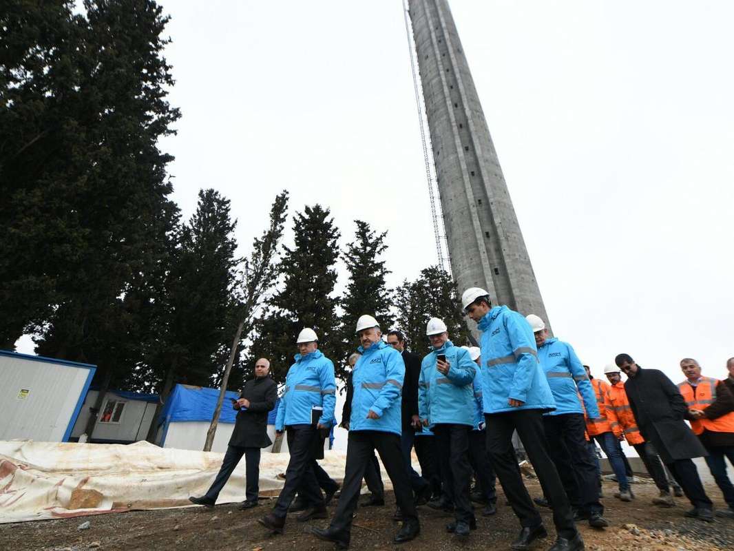“Önemli bir iş yapıyoruz. Bu kadar önemli bir iş yapılırken de birbirini takip etmesi gereken işlemler silsilesi var" diyen Bakan Arslan, "Ondan dolayı da ağır gidiyor, öyle gözüküyor. Bu kadar yükseklikte, bu kadar büyük bir kütleyi, konstrüksiyonu elbette ki rüzgarın bize izin vermesi gerekiyor. Rüzgar hızı 30 kilometre/saate çıkınca şu anki asansör de çalıştırmıyoruz, kule vinçlerimizi de çalıştırmıyoruz. Dolayısıyla beklemek zorunda kalıyoruz. Hava müsaade ettikçe biz çalışabiliyoruz. Kış periyotunda her ne kadar dışarıda çalıştıysak da, dışarıda çok fazla çalışma şansımız olmadı. Onu özellikle vurgulamış olalım. İnşallah ilk baharla birlikte tekrar süreçler hızlanacak. Hedefimiz bu sene inşallah burayı bitirmek. Tarih vermekten imtina ediyoruz. Daha önce tarih verdik rüzgar bize izin vermedi. Tarih vermekten imtina ediyoruz. Bu sene içerisinde inşallah bunu bitirmek" dedi.