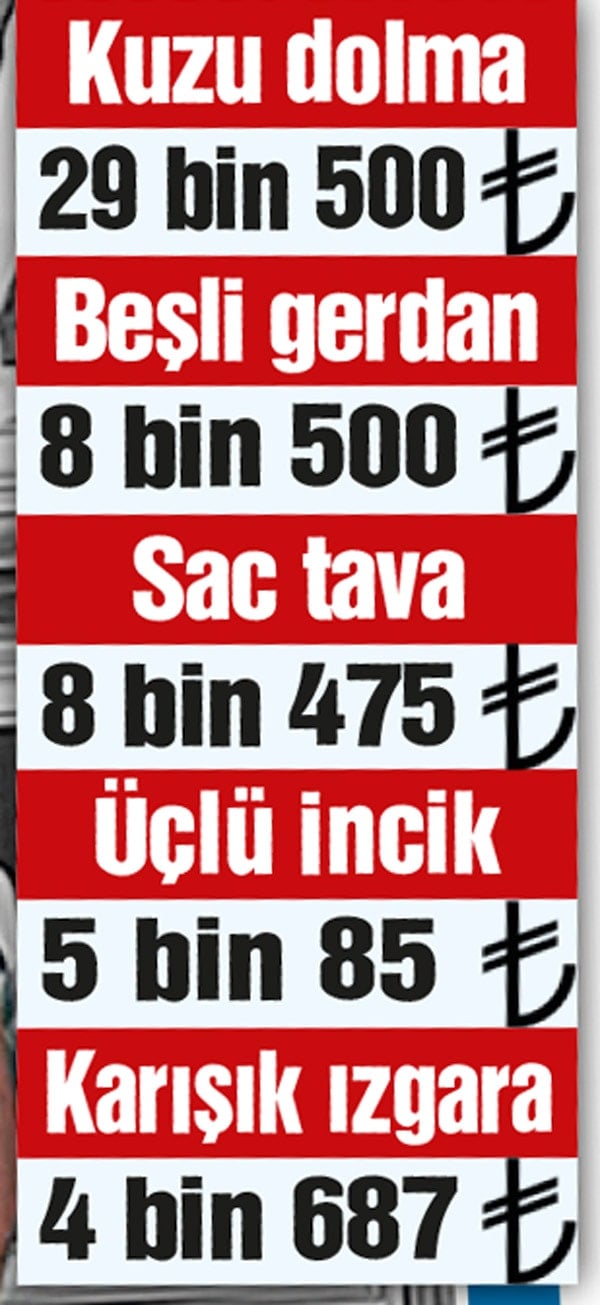 - Tüm Kuzu Dolması: 29 bin beşyüz