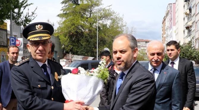 Gençlik ve Spor Bakanı Akif Çağatay Kılıç, Polis Teşkilatı'nın 172'nci kuruluş yıl dönümü nedeniyle İl Emniyet Müdürü Vetar Yavuz'u makamında ziyaret etti. Bakan Kılıç, Emniyet Müdürü Vedat Yavuz'a çiçek verdikten sonra emniyet müdür yardımcılarıyla da selamlaşıp günlerini kutladı. Emniyet Müdürlüğü girişinde polis memurları Bakan Kılıç'a çikolata ikram etti. Emniyet Müdürlüğü'nün şeref defterini imzalayan Bakan Akif Çığatay Kılıç, 'Bugün 10 Nisan 2017 Polis Teşkilatımızın 172'nci yıl dönümü. Ülkemizin ve milletimizin huzuru için, güvenliği için görev yapan ve bu uğurda gece gündüz demeden 24 saat görev başında olan tüm emniyet teşkilatımızın personellerinin kuruluş yıldönümünü kutluyorum. Bu aziz vatanın huzuru ve güvenliği için görev yaparken canını ortaya koyup şehit olan personelimize Allah'tan rahmet diliyorum ve ailelerine sabırlar diliyorum. Gazilerimizi uzun huzurlu ömürler diliyorum, sağlıklı günler diliyorum' dedi.