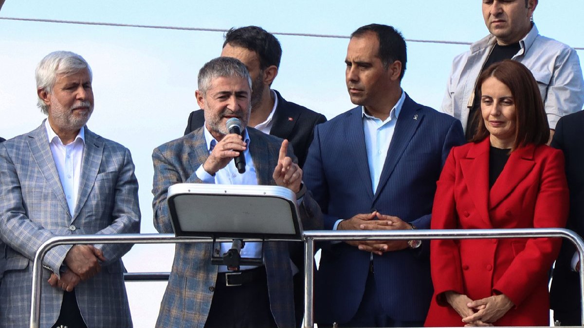 Daha sonra seçim otobüsünden vatandaşlara hitap eden Nebati, Cumhurbaşkanı Recep Tayyip Erdoğan'ın selamlarını iletti.