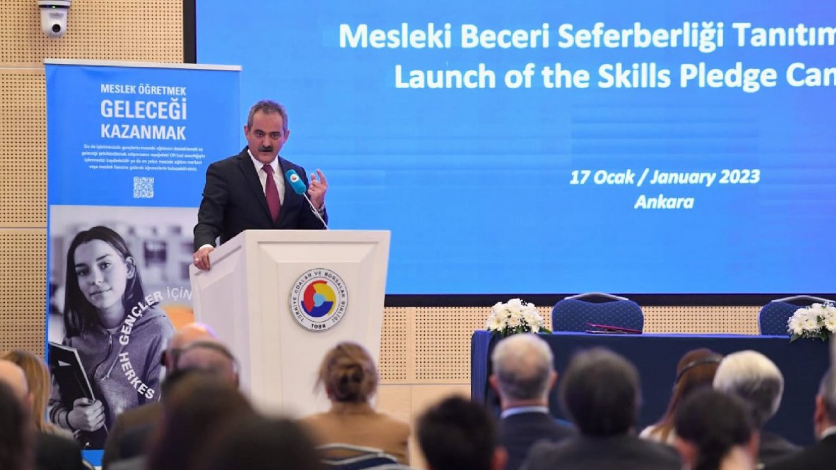 Milli Eğitim Bakanı Özer, Türkiye Odalar ve Borsalar Birliği (TOBB) Başkanı Rifat Hisarcıklıoğlu ve Birleşmiş Milletler Çocuklara Yardım Fonu (UNİCEF) Türkiye Temsilcisi Regina De Dominicis ile TOBB Sosyal Tesisi'nde 'Mesleki Beceri Seferberliği Protokol İmza Töreni'ne katıldı.
