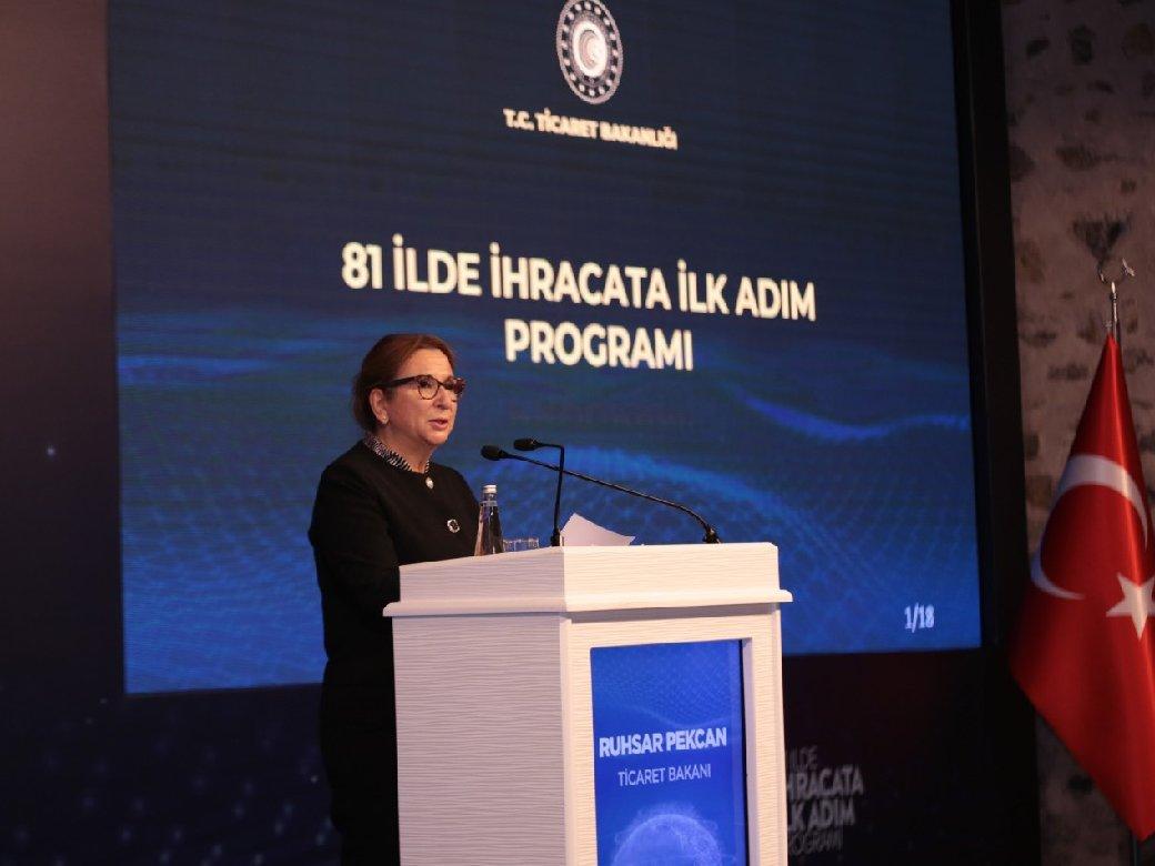 Ticaret Bakanı Ruhsar Pekcan İstanbul’da düzenlenen ‘81 ilde İhracata İlk Adım’ toplantısına katıldı. Ticaret Bakanlığı öncülüğünde başlatılan ’81 ilde İhracata İlk Adım’ programı ile ilgili bilgi veren Pekcan ihracat yapma potansiyeli olan firmalara destek olarak ihracat yapmaları için destek olacaklarını söyledi.