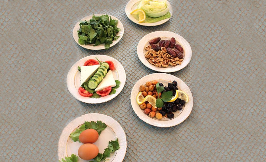 SAHUR: Süt, yoğurt, peynir (75 gram 17.5 lira), yumurta (1 adet 2.25 lira), tam tahıllı ekmekler (2 dilim 2 lira), çiğ sebze-meyve gibi besinlerden oluşan hafif bir kahvaltı yapılabilir ya da çorba (1 kase 10 lira), zeytinyağlı yemekler (Porsiyon 15 lira), yoğurt (180 gram 17 lira) ve salatadan (kase 15 lira) oluşan bir öğün tercih edilebilir.