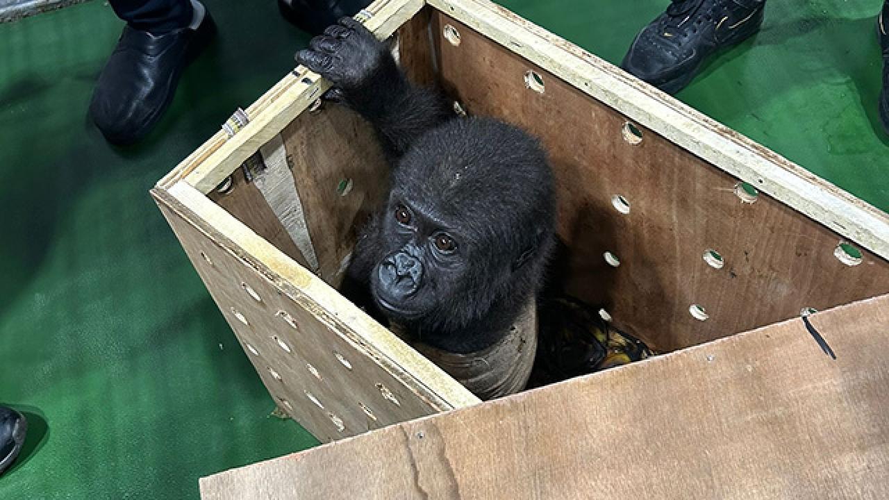 Bakanlığın X sosyal medya hesabından, Ticaret Bakanlığına bağlı Gümrükler Muhafaza ekiplerinin İstanbul Havalimanı'nda yakaladığı nesli tükenmek üzere olan goril yavrusuna ilişkin paylaşım yapıldı.