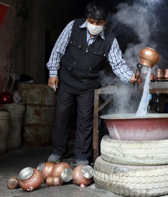 Yarım asırdır kalaycılık yaptığını anlatan Hacı Ateş, pandemi döneminde vatandaşların bakır ürünlere yönelmesiyle işlerinde artış yaşandığını kaydetti.