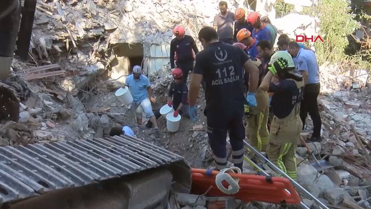 Binanın bulunduğu alanda sulama yapan bir işçi, düşen ayakkabısını almak için hareket ettiği sırada çukura düştü. İşçi, bu sırada üstüne düşen taş ve molozlar nedeniyle beline kadar göçük altında kaldı.
