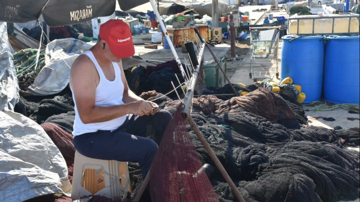 'Vira bismillah' demek için ağlarını ve teknelerini tamir eden balıkçılar, kopmuş ve yıpranmış yerleri örüp, sağlamlaştırıyor.
