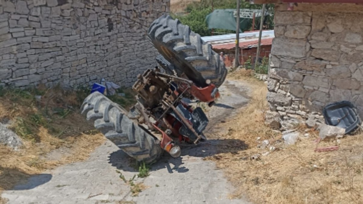 Öte yandan, traktörün devrilme anı bir binanın güvenlik kamerasınca kaydedildi.