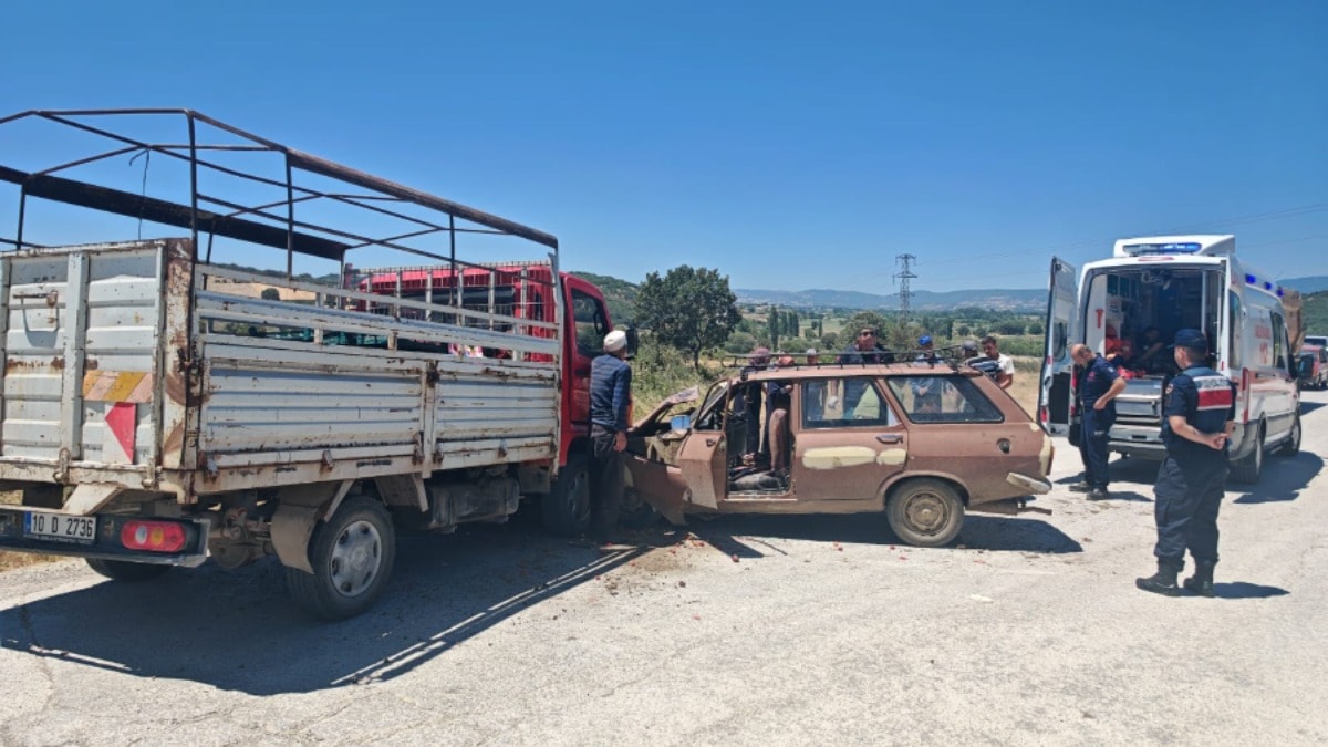 Ş.Y. (65) idaresindeki 10 D 2736 plakalı kamyonet, Akçal Mahallesi'nde karşı yönden gelen M.A'nın (71) kullandığı 10 HV 664 plakalı otomobille çarpıştı.