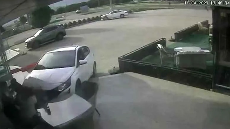 İş yerinin güvenlik kamerası kayıtlarında otomobilin motosiklete çarptıktan sonra kontrolden çıktığı, mobilya mağazasına yönelen aracın iş yeri önünde bekleyen 3 kişiden N.Ş'ye çarptıktan sonra iş yerine girdiği anlar yer alıyor.