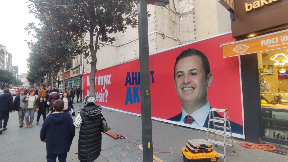 CHP'nin Balıkesir Büyükşehir Belediye Başkan adayı olan 27. Dönem CHP Balıkesir Milletvekili Ahmet Akın'ın Millî Kuvvetler Caddesi üzerinde asılı olan afişi, şikayet edildiği iddiasıyla belediyenin zabıta ekiplerince kaldırılmak istendi.