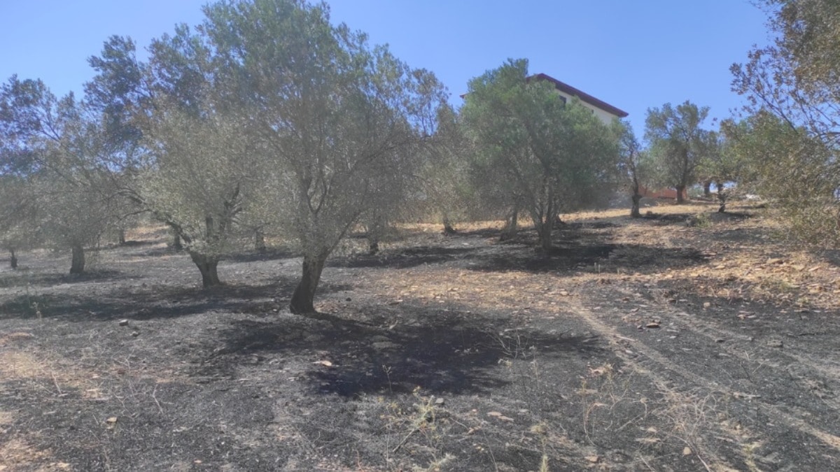 Alevlerin birkaç saat içinde söndürülmesi ve soğutma çalışmasının ardından yapılan hasar tespitinde, 350 dönüm zeytinlik ve orman ile tarım arazisinin, koyun sayası olarak kullanılan iki alanın zarar gördüğü belirlendi.