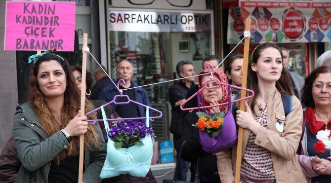 Balıkesir Kadın Platformu, 8 Mart Dünya Emekçi Kadınlar Günü nedeniyle akşam saatlerinde yürüyüş düzenledi. Yeşilli Meydanı'nda toplanan yaklaşık 300 kadın ağızlarında düdükler, ellerinde pankartlarla Alihikmetpaşa Meydanı'na kadar yürüdü. 'Kadın kadındır, çiçek babandır', 'Kadınlar sokaklarda güzel', '8 Mart resmi tatil olsun', 'Kadına yönelik şiddete son', 'Trans cinayetleri politiktir' ve 'Mutfakları terk ettik, sokaktayız' yazılı pankartlar taşıyan grup, 'Erkek vuruyor, devlet koruyor', 'Asla yalnız yürümeyeceksin' ve 'Üreten biziz yöneten de biz olacağız' sloganı attı. Çalınan müziklerle coşan kadınlar, 'Leylim ley' türküsüyle halay çekti. İki genç kızın taşıdığı, mor ve yeşil renkli sütyenler ise hem yürüyüşte hem meydandaki basın açıklamasında ilgi odağı oldu. İki sütyenin içine çiçekler koyan genç kızlar, bir ara halay çekmek için bunları başka bir kadına teslim etti. Halayın sonunda sütyenler diğer pankartlarla birlikte meydana bırakıldı.