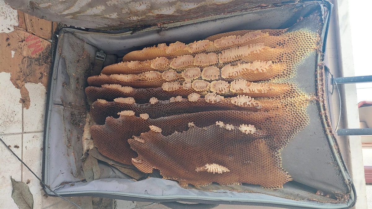 İlçe merkezinde ikamet eden evin sahibi İlhami Yörük, evinin balkonunda atıl halde bulanan valize arıların petek yaptığı haberini aldı.