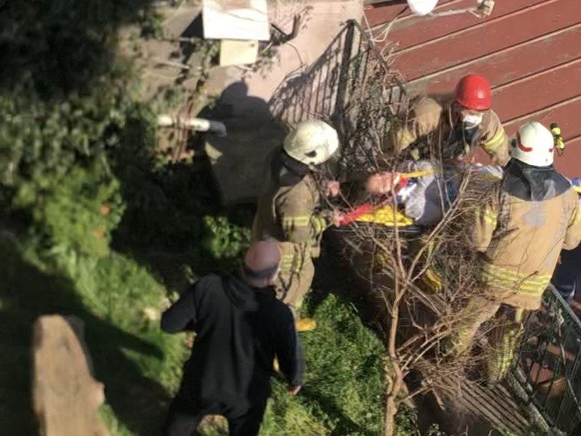 Kısa bir süre sonra gelen olay yerine gelen sağlık ekipleri yaralı kadına müdahale ettikten sonra itfaiye ekipleri kadının düştüğü yerden çıkarttı.