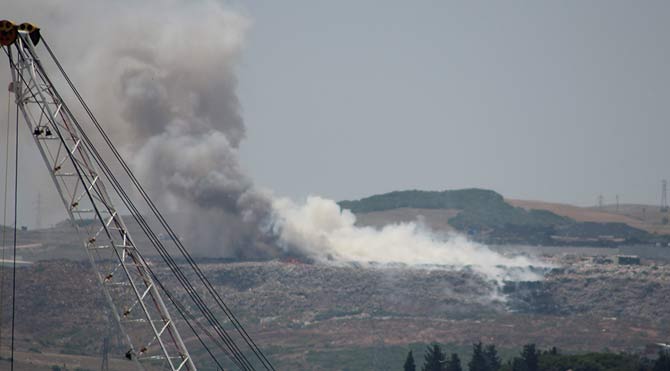 Geçen yıl beş kez çıkan çöplük yangını bu yıl ikinci kez yanmaya başladı. Çöplükteki söndürme çalışmaları rüzgar nedeniyle güçlükle yürütülüyor.