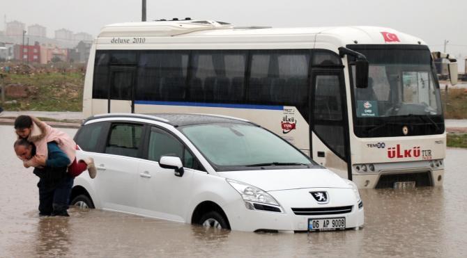 Bandırma`da etkili olan yağışlar, ulaşımı ve yaşamı olumsuz etkiledi. Yağıştan dolayı Nato Caddesi`nde seyir halinde olan bir servis minibüsü ile otomobil sular altında kaldı. Servis aracı diğer servis araçları tarafından halatla çekilirken, otomobil içerisinde kızı Betül Soyer ile birlikte mahsur kalan Ali Soyer, oto kurtarıcının gelmemesi üzerine kızını otomobilin camından çıkararak, sırtında taşıdı. Su birikintisi nedeniyle ulaşıma kapanan Nato caddesinde belediye görevlileri çalışma başlattı.