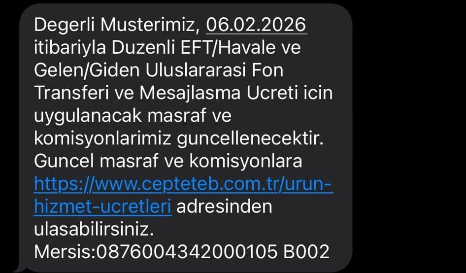 Bankalar, ücret artışlarını kademeli olarak devreye alırken, henüz bilgilendirme mesajı almayan müşterilerin de işlem yapmadan önce güncel ücret tarifelerini kontrol etmeleri öneriliyor. Önümüzdeki günlerde diğer bankaların da benzer bilgilendirme mesajları göndermesi bekleniyor.