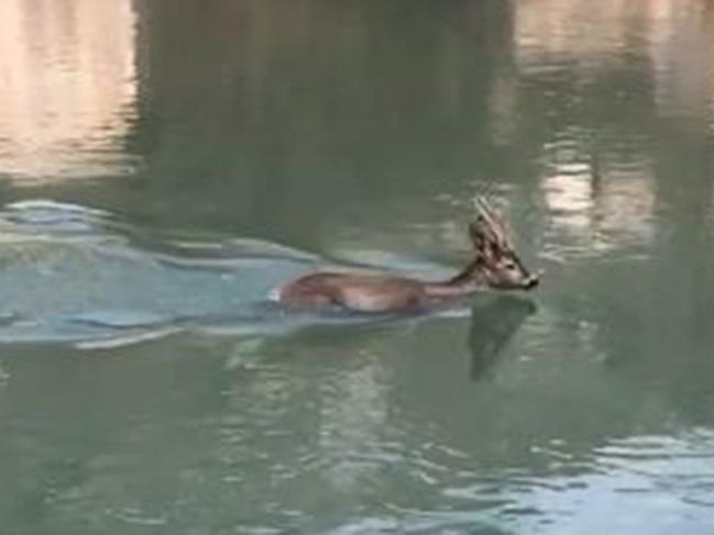 Yüzerek kıyıya çıkan karaca ormanlık alana doğru koşarak uzaklaştı. O anları ise bölge sakinlerinde Sinan Büyük ve Birol Saroğlu tarafından cep telefonuna kaydetti.