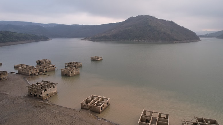 Ortaya çıkan terk edilmiş yapılardan bazıları dronla görüntülendi.