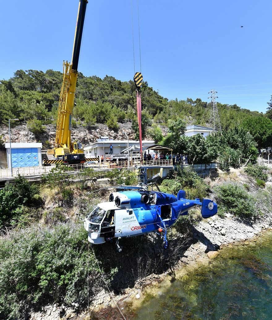 Yangının sönmesi ve helikopterin nasıl çıkarılacağı yönündeki incelemelerin ardından, 5 saatlik bir operasyonda İZSU Genel Müdürlüğü, İzmir Büyükşehir Belediyesi Çevre Koruma ve Kontrol Daire Başkanlığı, Ulaştırma Denizcilik ve Haberleşme Bakanlığı, Orman Bölge Müdürlüğü ve helikopterin bağlı olduğu Rus firması ekiplerinin işbirliği ile aracın barajdan çıkarılması sağlandı.