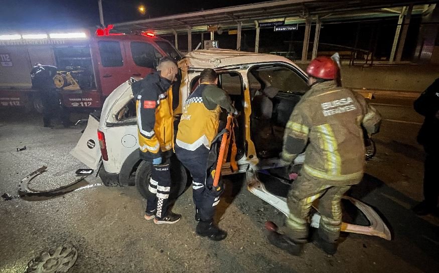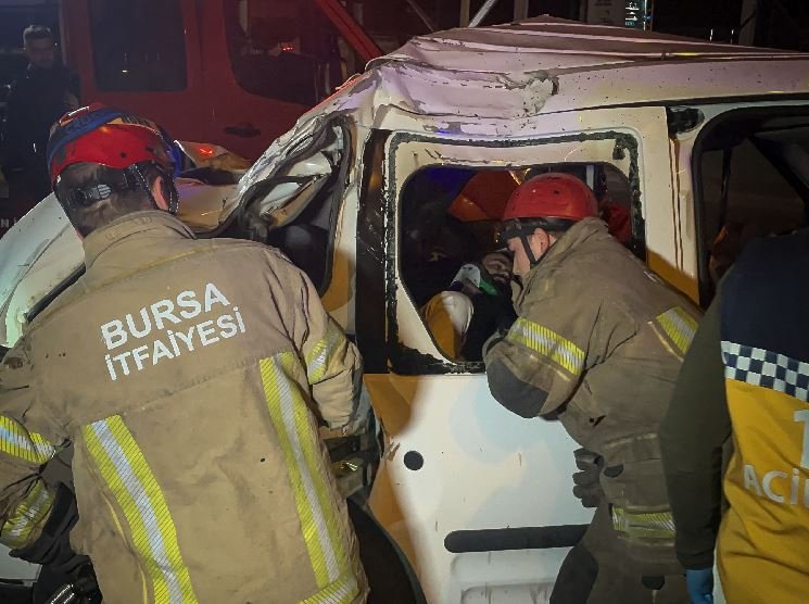 Ekipler, 2 kişiyi araçtan çıkarıp, Bursa Yüksek İhtisas Eğitim ve Araştırma Hastanesi'ne kaldırdı. Yaralıların durumunun ağır olduğu bildirildi. Kazaya ilişkin soruşturma başlatıldı. (DHA)