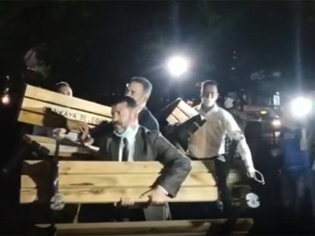 Bu arada polis ekiplerinin güvenlik önlemleri kapsamında bekleyişlerini sürdüren baro başkanlarına Çankaya Belediyesi tarafından oturmaları için bank gönderildi.