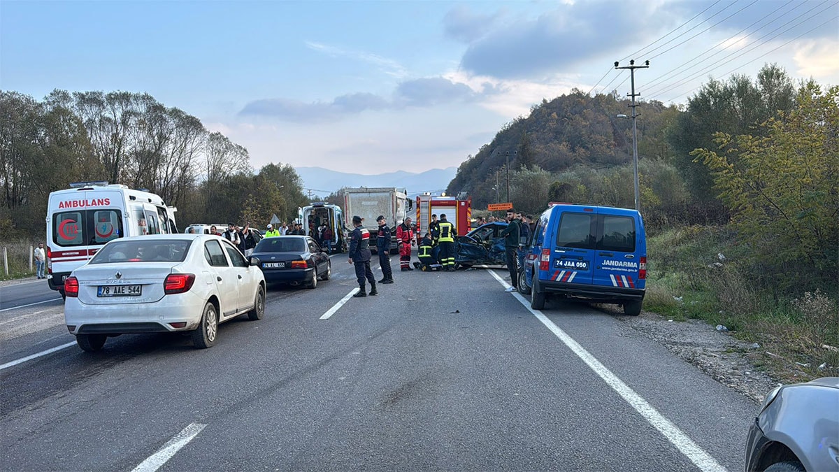 Bartın-Karabük yolu Potbaşı mevkisinde seyir halinde bulunan hafif ticari araç ile otomobilin çarpışması sonucu 2'si çocuk, 7 kişi yaralandı.