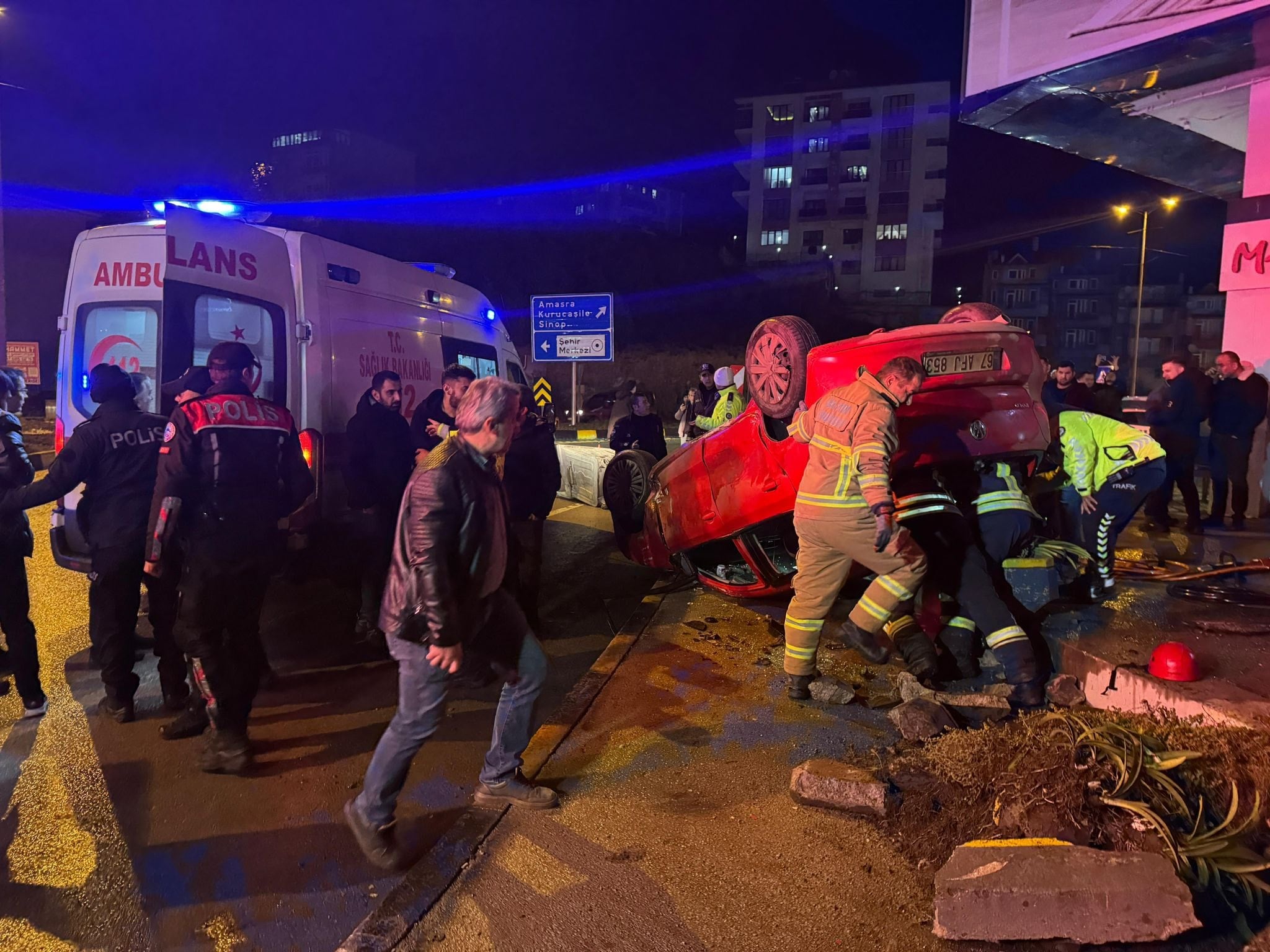 Kazada otomobil sürücüsü E.K. ile araçta bulunan R.B. ve M.H. yaralandı. Polis ekiplerinin ihbarı üzerine olay yerine sağlık ve itfaiye ekipleri sevk edildi. Araçta sıkışan R.B., itfaiye ekiplerinin çalışmasıyla bulunduğu yerden çıkarıldı.