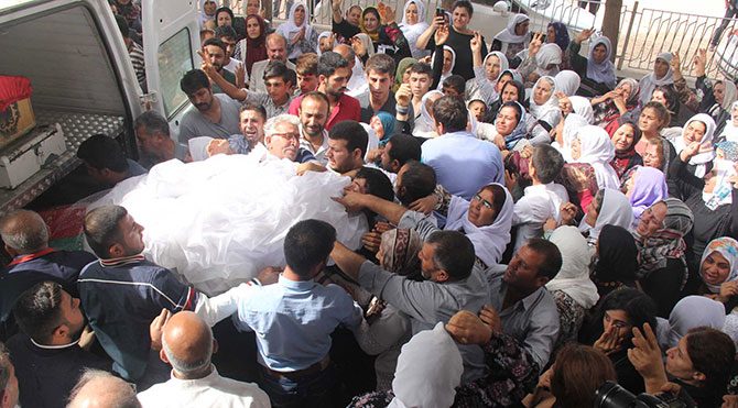 Ankara'da, düzenlenen barış mitingi öncesi tren garı önünde meydana gelen 2 patlamada yaşamını yitiren makinist Yılmaz Elmascan, üniversite öğrencisi Başak Sidar Çevik ile halası Nurgül Çevik'in cenazeleri otopsilerinin ardından toprağa verilmek üzere memleketi Şanlıurfa'nın Suruç İlçesi'ne getirildi ve hastane morguna konuldu.