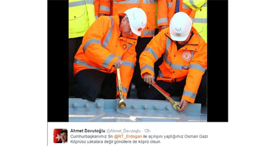 BAŞBAKAN DAVUTOĞLU, YILDIRIM’I KAREDEN ÖZELLİKLE ÇIKARDITörende İzmit Körfez geçiş köprüsünün son tabliyesi monte edildi. Erdoğan, Davutoğlu ve Yıldırım somunlar sıktı ve körfezin iki yakası birbirine bağlandı. Başbakan Ahmet Davutoğlu sosyal medya hesabından törenle ilgili fotoğraflar paylaştı. Davutoğlu’nun paylaştığı fotoğraflarda Binali Yıldrım’ın olmaması ve kareden özellikle çıkarılması dikkat çekti.