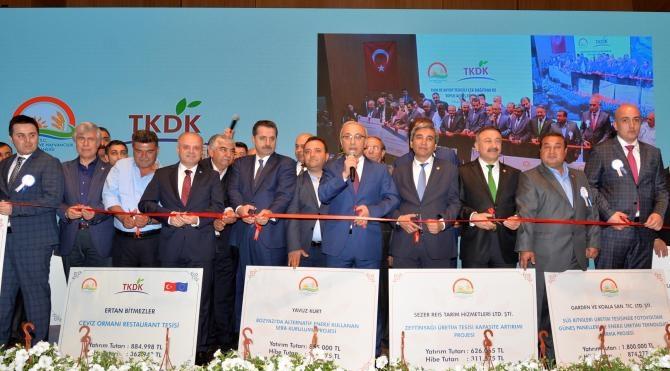 Başbakan Yardımcısı Lütfi Elvan ile Gıda, Tarım ve Hayvancılık Bakanı Faruk Çelik, Tarım ve Kırsal Kalkınmayı Destekleme Kurumu (TKDK) Mersin İl Koordinatörlüğü tarafından desteklenen ve yatırım desteği alan tesislere temsili açılışı ve çek verme törenine katıldı.
