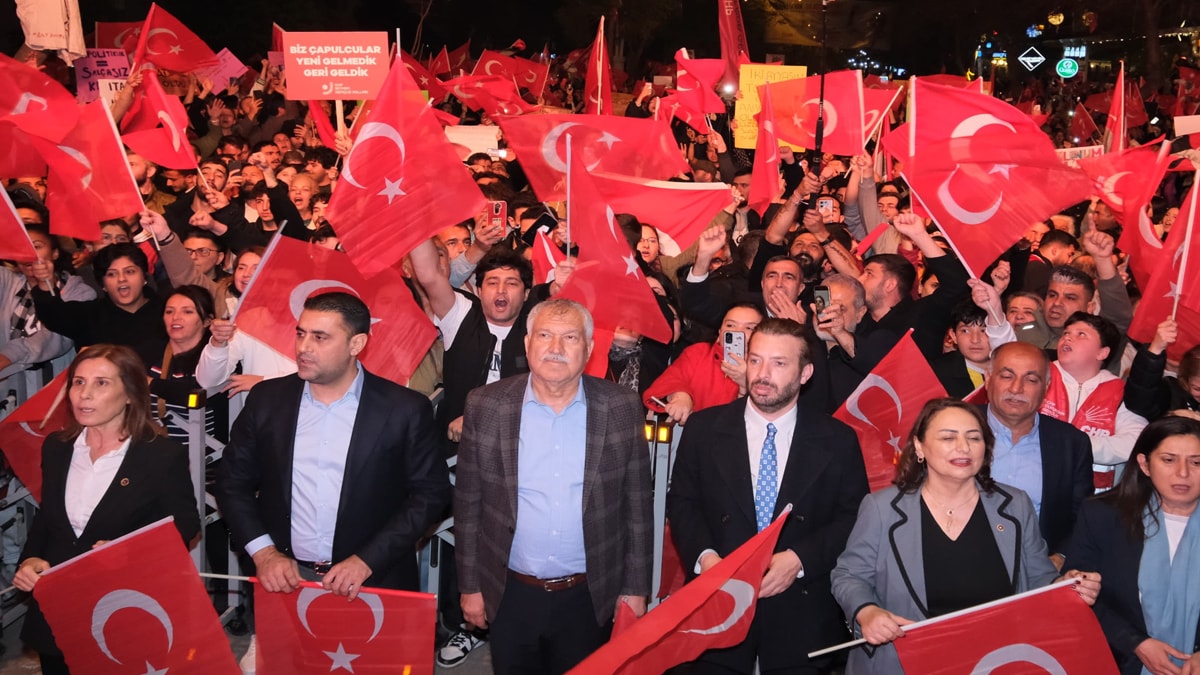 23 Mart 2025 Pazar günü akşam saatlerinde Çukurova İlçesi Uğur Mumcu Bulvarı’nda toplanan on bini aşkın Adanalı, Uğur Mumcu Bulvarı’na kadar yürüdü ve miting gerçekleştirdi.
