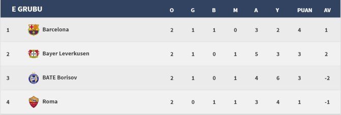 Barcelona puanını 7 yaparken BATE Borisov 3 puanda kaldı.