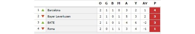 Ancak kalan dakikalarda başka gol olmayınca Roma sahadan 3-2’lik yenilgiyle ayrıldı ve grupta 1 puanla son sırada yer aldı. Bate Borisov ise 3 puana ulaştı.