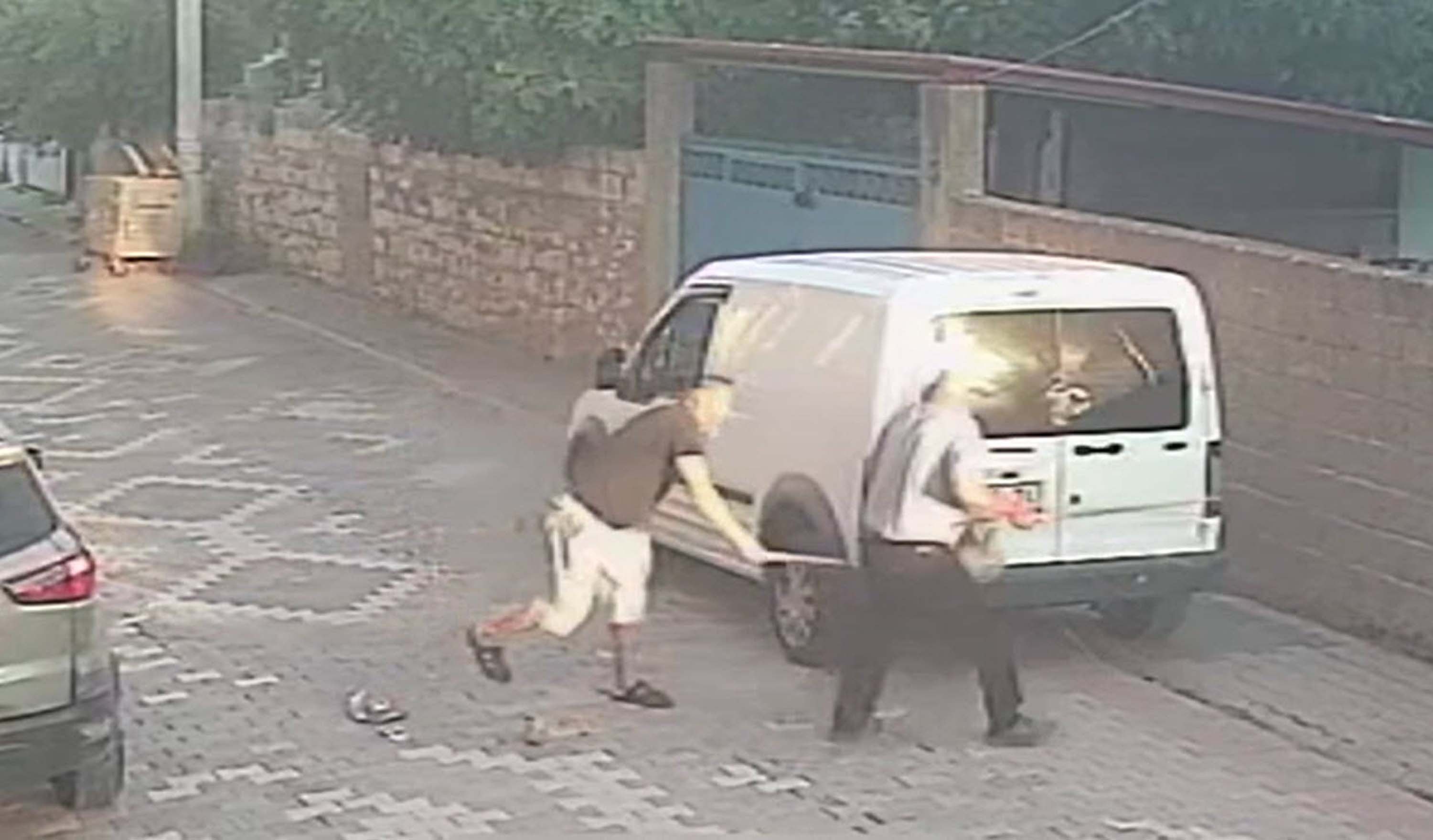 Görüntülerden, hafif ticari araçta bekleyen Kemal S.'nin, evinin önünde beklediği Süleyman Sırrı Dindar'ı görünce inip, önce tokat attığı daha sonra da defalarca sopayla vurduğu o anların bir işyerinin güvenlik kameraları tarafından görüntülendiği ortaya çıktı.