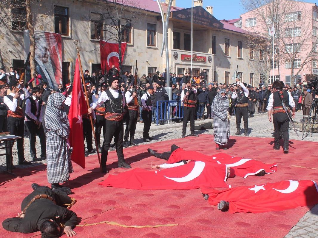 “Programda tertiplenen Bayburt’un Düşman İşgalinden Kurtuluşunun canlandırıldığı tiyatro gösterisinde kurtuluş mücadelesini yansıtan sahnelerin içinde spontane bir şekilde fonda İstiklal Marşı’nın bir kısmının çalındığı, devamında sala okunduğu, ortama diğer seslerin de karıştığı bir sahne sergilenmiş ve tiyatro sahne akış planına göre devam etmiştir.”