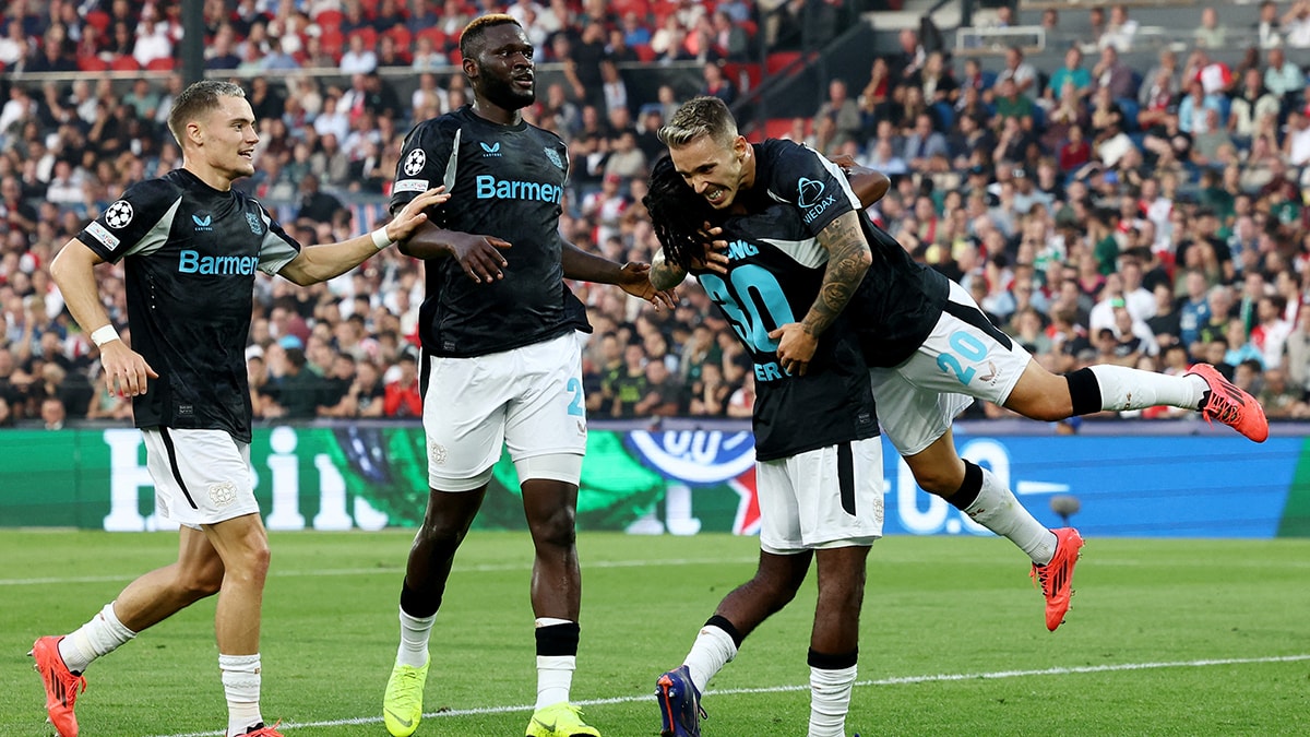 Şampiyonlar Ligi'nde Feyenoord'u deplasmanda farklı geçen Bayer Leverkusen, ilk yarıda attığı dört golle zafere uzandı.