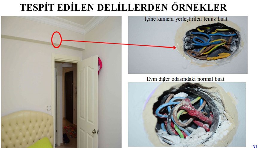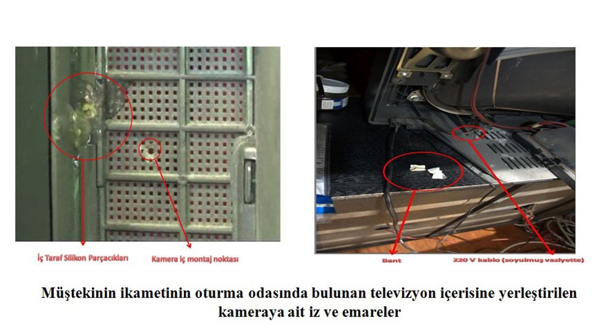 İddianamede, soruşturma sırasında ele geçirilen, kamera ve ses kayıt cihazlarının fotoğrafları ve müştekilere ait olduğu iddia edilen, internet sitelerinde yayınlanan görüntüler ile daha sonra aynı açılandan alınan görüntülerin karşılaştırıldığı örnek fotoğraflar da yer aldı. (DHA)