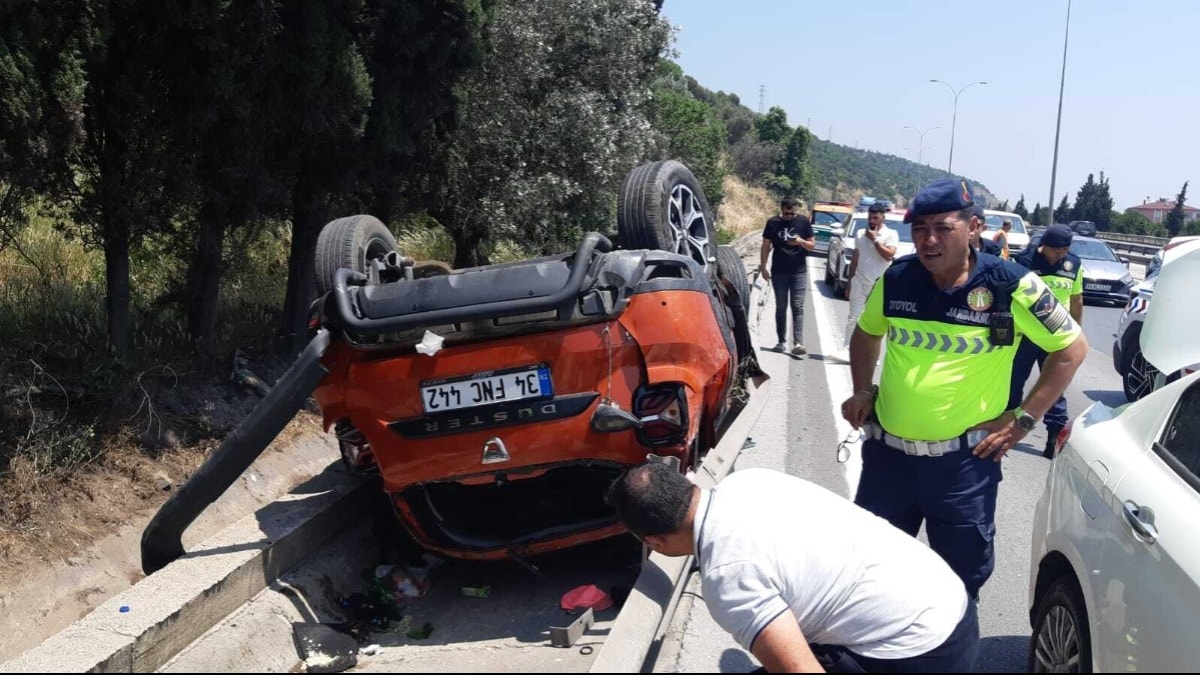 Kocaeli’nin Körfez ilçesi TEM Otoyolu geçişinde, F.B. yönetimindeki cip, sürücüsünün direksiyon hakimiyetini kaybetmesi sonucu bariyerlere çarpıp takla atarak su kanalına yuvarlandı. Araçta bulunan 2’si çocuk 7 kişi yaralandı.