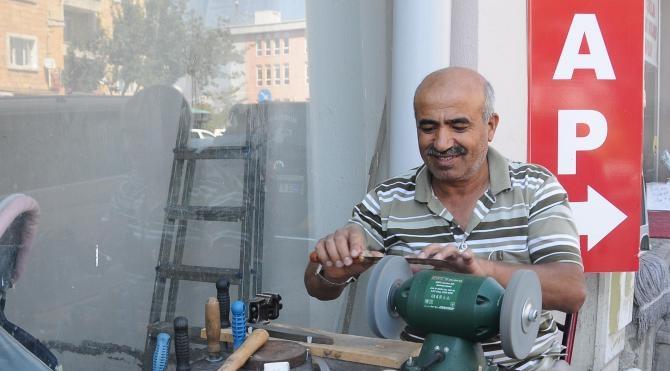 Nevşehir’de yaklaşık 10 yıldır bıçak bileyen Aslan Erdem, yaklaşan bayram öncesi işlerinin iyi olduğunu söyledi. Erdem, "Bıçak, satır, nacak gibi kurbanda vatandaşın elinin altında hazır olan bu tür kesici aletleri biliyoruz. Akşam geç saatlere kadar çalışıyoruz. Bıçakları 2 TL, satır ve nacakları 3 ile 5 TL arasında bileyliyoruz" dedi.